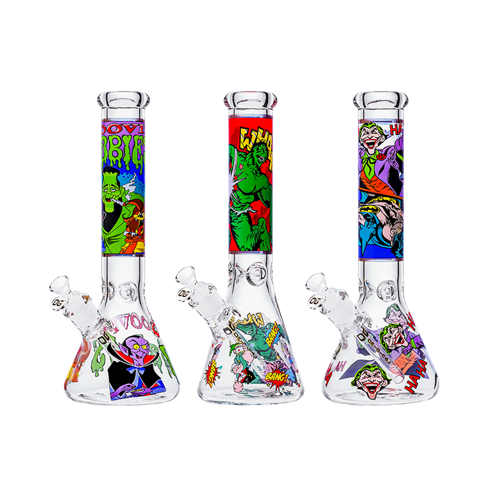 Unleash your inner hero (or villain!) with the 14" OG Original 7mm Comic Relief Beaker Bong! These aren't your average water pipes; they're bold, graphic statements featuring iconic comic book-inspired designs that will add a touch of pop culture flair to your smoke sessions.