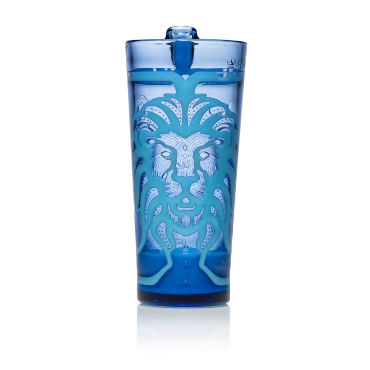 The Brave One tumbler embodies the essence of strength and courage, symbolized by the majestic lion “Aqueduct” design. With fine textured details, the lion comes to life as a powerful emblem of protection and bravery. The background features elements from our Constellation pattern, adding a celestial touch that elevates the lion’s regal presence. As your favorite drink flows through the lion-shaped “Aqueduct,” the design is illuminated, creating a striking visual display that captures the spirit of boldness. Standing at 7.5 inches tall, this tumbler is not only a drinkware piece but a statement of courage, inviting you to channel your inner strength with every sip.