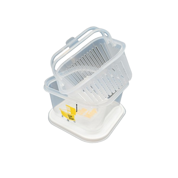 The Glob Mops Mop Bucket Soaking Station is designed to enhance your cleaning experience. This leak-proof bucket features a handle on the basket, keeping your hands clean and dry during use.