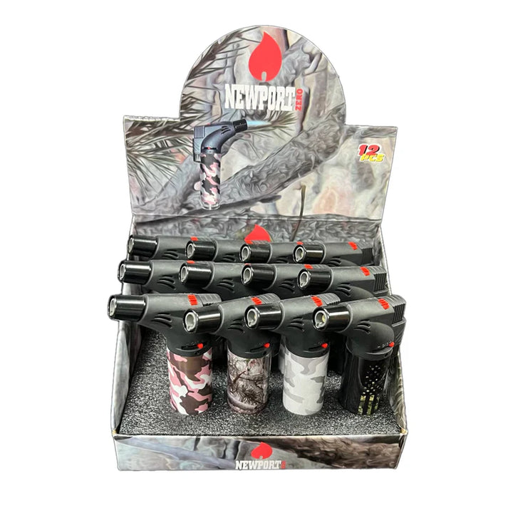 The Newport Camouflage Single Windproof Torch Lighter is your ultimate companion for outdoor adventures. With its single flame pocket design and auto-ignition, you can count on reliable performance even in windy conditions. Featuring a max burn temperature of 2300°C, a safety lock, and an ergonomic design with an extended burner head, this lighter combines power with comfort for an unparalleled experience.