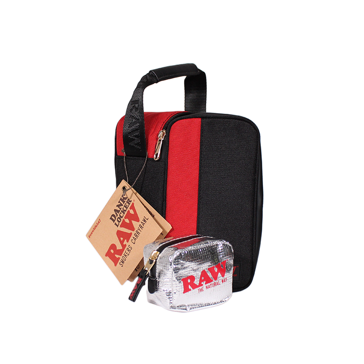 The RAW Dank Locker CarryRAWl is perfect for smokers on the go who bring the good but don’t want to smell like the good! Features an integrated combination lock, double siliconized smell-reducing zippers, hard-sided cross-elastic accessory panels (for holding your papers, tips, lighters, etc.), 5+1 smell-proof design including a full foil ¼ oz sized bag, quick access outer zipper pouch, easy carry handle, and RAWesome styling!