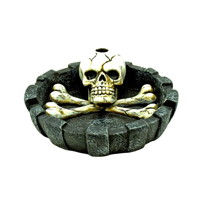 Feel your head empty with the Skull and Crossbones Ashtray from Fantasy Gifts. Made from cold-cast resin and hand-painted, this piece features built-in snuffer and joint rests. Ready to weather any storm on the high seas of your next toke.
